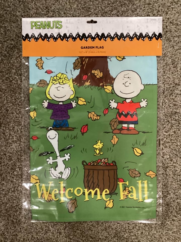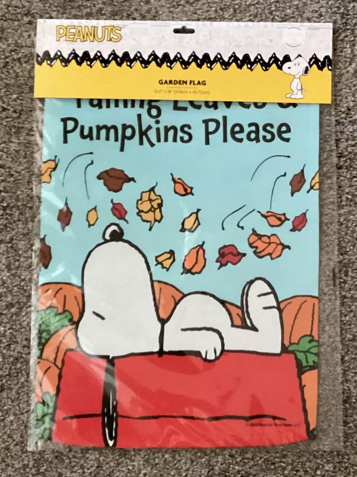 with Snoopy sleeping on a leaf pile (12.5" x 18")