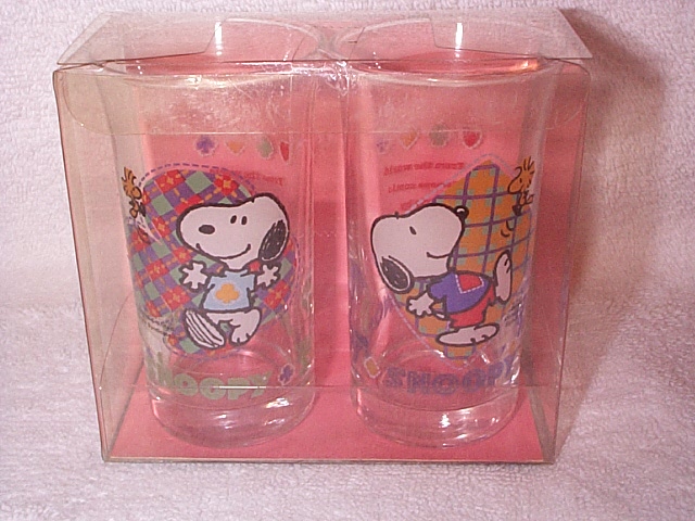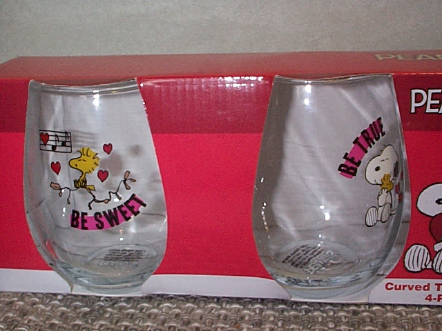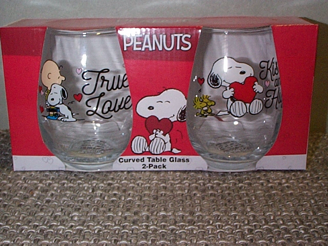 Set/2 curved drinking glasses with Peanuts