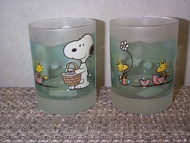 Frosted Easter glass with Snoopy &