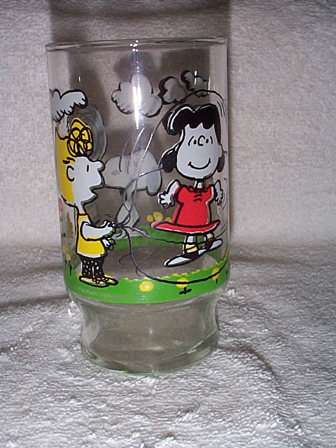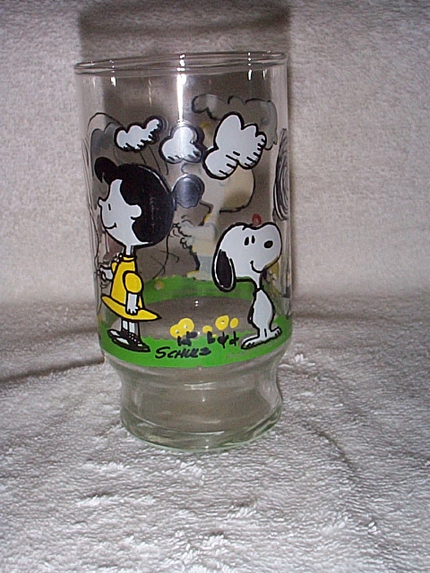 McDonald's glasses: - Snoopy & friends having picnic; Linus "The struggle for security is no picnic" (picture, right) |