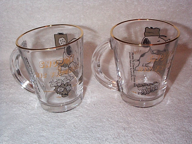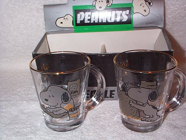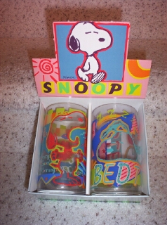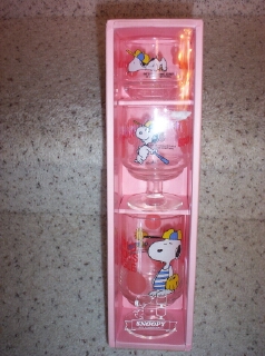 Juice glasses set/3 from Sasaki Glass Co in Japan features Snoopy mailing a letter, turning a paper in, and reading a newspaper Mint in box | $25 |