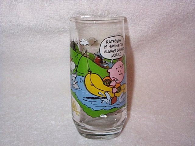 McDonald's glasses: - Charlie Brown rafting "Rats! Why is having fun always so much work?" |