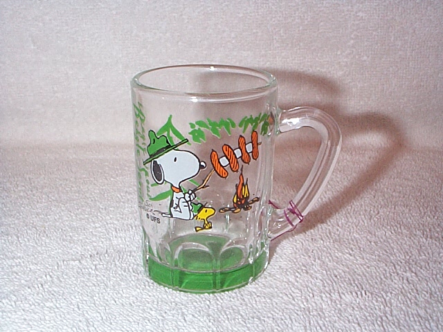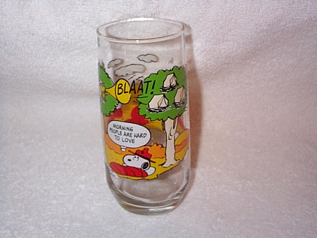 McDonald's glasses: - Snoopy & gang camping "Morning people are hard to love" |