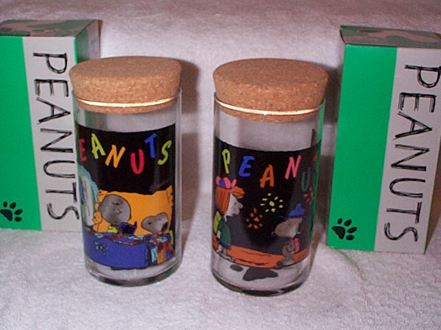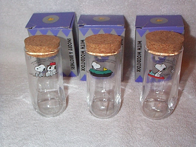 Storage jar with cork top - Peppermint Patty, Snoopy & Marcie with backpacks MIB (picture, right) | $15 |