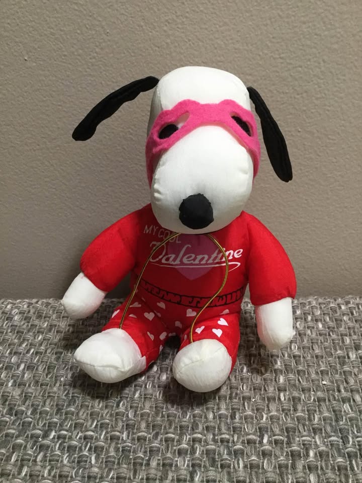 - Snoopy "My Cool Valentine" in red suit with hearts
